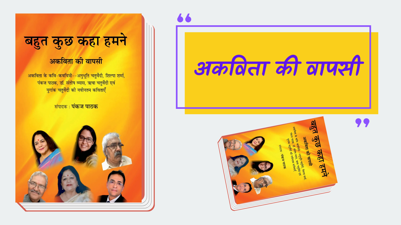 वरिष्ठ पत्रकार पंकज पाठक के संपादन में हाल ही में आए कविता संग्रह ‘बहुत कुछ कहा हमने अकविता की वापसी’ की भूमिका, जिसे डॉ विकास दवे निदेशक, साहित्य अकादमी, भोपाल, के निदेशक, डॉक्टर विकास दवे ने लिखा है, उसे हम जस का तस प्रस्तुत कर रहे हैं, ताकि आप इस कविता संग्रह के मिज़ाज से रूबरू हो सकें.
