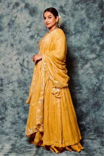 फ़ैब इंडिया के पीले रंग के इस एथनिक आउटफ़िट में विद्या बालन कितनी सलीकेदार नज़र आ रही हैं! आप भी किसी समारोह में इस तरह के पीले रंग के आउटफ़िट का चुनाव कर सकती हैं.
