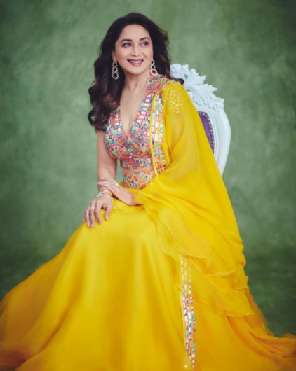 मल्टी कलर्ड टॉप और पीले रंग का लहंगा, वो भी पीले रंग के मल्टी कलर्ड किनारे वाले दुपट्टे के साथ. माधुरी दीक्षित का यह अंदाज़ हमारी ही तरह आपको भी बेहद पसंद आया होगा. इस लुक से यह तो साफ़ पता चलता है कि पीले रंग का लहंगा आपकी वॉर्ड्रोब में होगा तो आप किसी भी फंक्शन में बेहद सुंदर नज़र आ सकेंगी.
