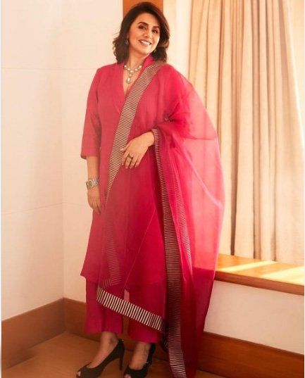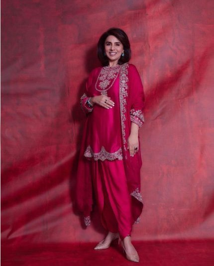 नीतू कपूर ने जो बेहद सुंदर सा फ़ुशिया कलर का आउटफ़िट पहना है, वो फ़ैशन डिज़ाइनर जयंती रेड्डी के कलेक्शन से है. उनकी ज्वेलरी आम्रपाली ज्वेल्स और फ़राह ख़ान के कलेक्शन है. अब यह तो ऐसा लुक है, जिसे आप बिंदास किसी भी तरह के पारंपरिक अवसर के अलावा विवाह समारोहों के मौक़े पर भी अपना सकती हैं.