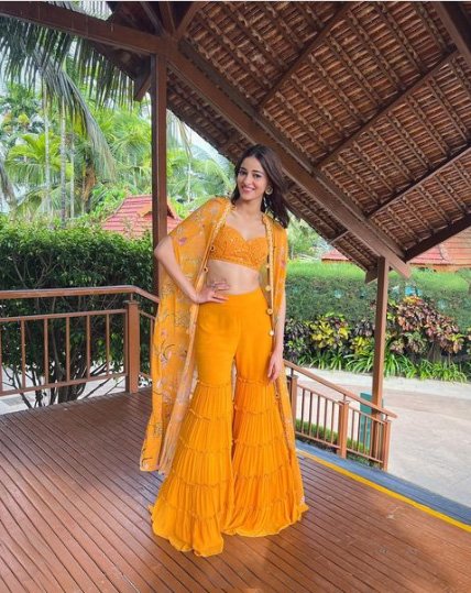 डिज़ाइनर अर्पिता मेहता के कलेक्शन के इस शोख़ पीले रंग के शरारा सेट में अनन्या पांडे ऊर्जा से भरी नज़र आ रही हैं. अनन्या के इस लुक को सेलेब्रिटी स्टाइलिस्ट मीगन कॉन्सेसिओ ने स्टाइल किया है. त्यौहारों के मौसम इस तरह के ब्राइट कलर्स माहौल के अनुरूप लगते हैं. यदि आप ब्राइट कलर्स नहीं पहनती हैं तो भी एक बार इन्हे ट्राइ करना तो बनता है!