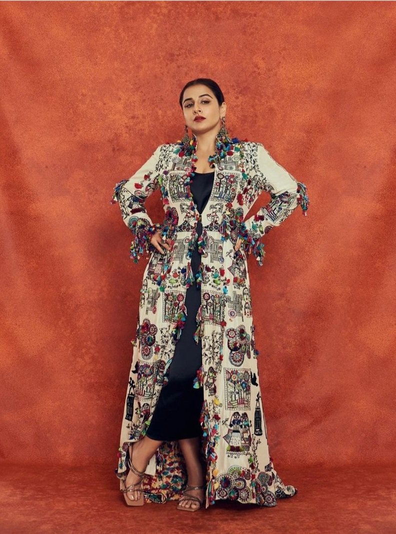 यदि आप उन लोगों में से हैं, जो मल्टिकलर्ड ड्रेस को ले कर आश्वस्त नहीं हैं कि वह आप पर अच्छी लगेगी या नहीं तो विद्या बालन की तरह सॉलिड कलर की ड्रेस के ऊपर मल्टिकलर्ड केप पहन सकती हैं. विद्या का यह मल्टिकलर्ड आउटफ़िट अनामिका खन्ना के कलेक्शन से है.