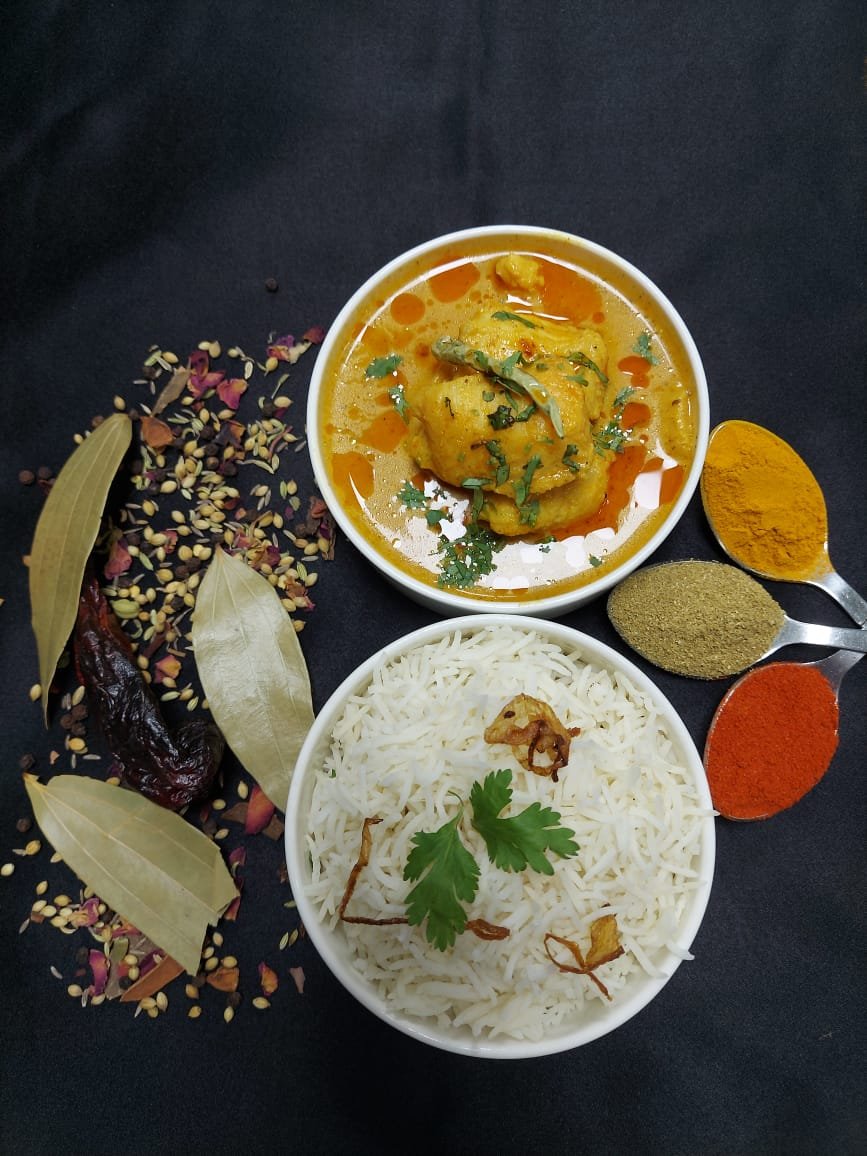 100 ग्राम दही, 40 ग्राम मछली को मैरिनेड करने के लिए और 60 ग्राम करी में डालने के लिए