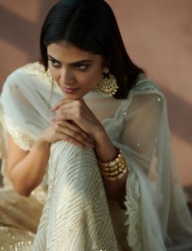 मालविका मोहनन ने अपने सफ़ेद, चमकभरे आउटफ़िट से मिलती-जुलती ज्वेलरी का चयन किया है और उनका यह लुक किसी भी पारंपरिक समारोह या फिर शादी समारोह में भाग लेने के लिए हूबहू अपनाया जा सकता है. मालविका ने क्यूरिओ कॉटेज ज्वेलरी की ज्वेलरी पहनी है.