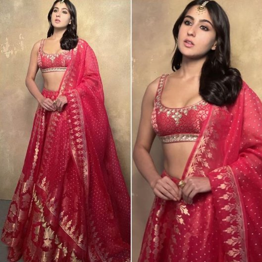 सारा अली ख़ान ने लाल रंग का जो शेड चुना है, वह आंखों को सुकून देनेवाला है. अनीता डोंगरे के इस आउटफ़िट में सारा का देसी लुक ख़ूबसूरत है. त्यौहारों के मौसम में इस रंग के साथ-साथ इस लुक को भी अपनाया जा सकता है.