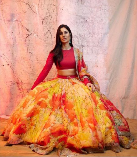 कट्रीना कैफ़ ने सब्यसाची का यह आउटफ़िट पहना है, जिसका ब्लाउज़ लाल रंग का है और लहंगा पीले, लाल रंग की बहुलता वाला और फ़्लोरल है. आप चाहें तो इस तरह से भी लाल रंग को इस त्यौहार अपने आउटफ़िट में जगह दे सकती हैं.