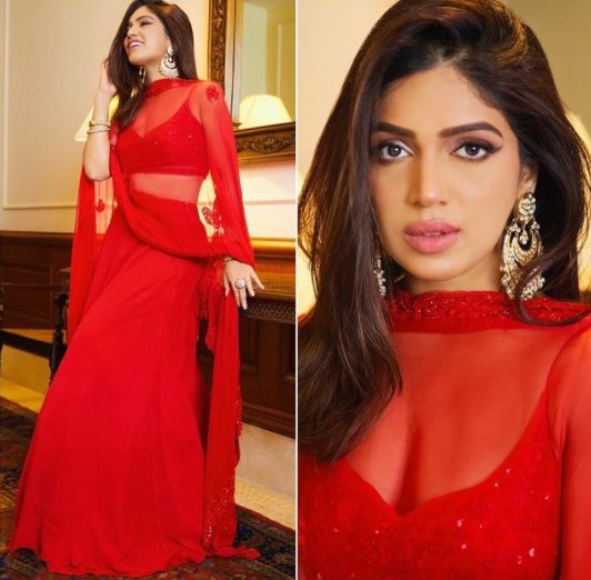 भूमि पेडणेकर ने लाल रंग के जिस शेड का चयन किया है, वह भी अधिकांश भारतीय युवतियों पर ख़ूब जंचेगा. भूमि ने प्रेम्या, बाइ मनिशी का आउटफ़िट पहना है. लाल रंग के इस आउटफ़िट के साथ उन्होंने क्यूरिओ कॉटेज के बेहद सुंदर ईयरिंग्स पहने हैं. यह लुक हूबहू कॉपी किए जा सकने जैसा है.