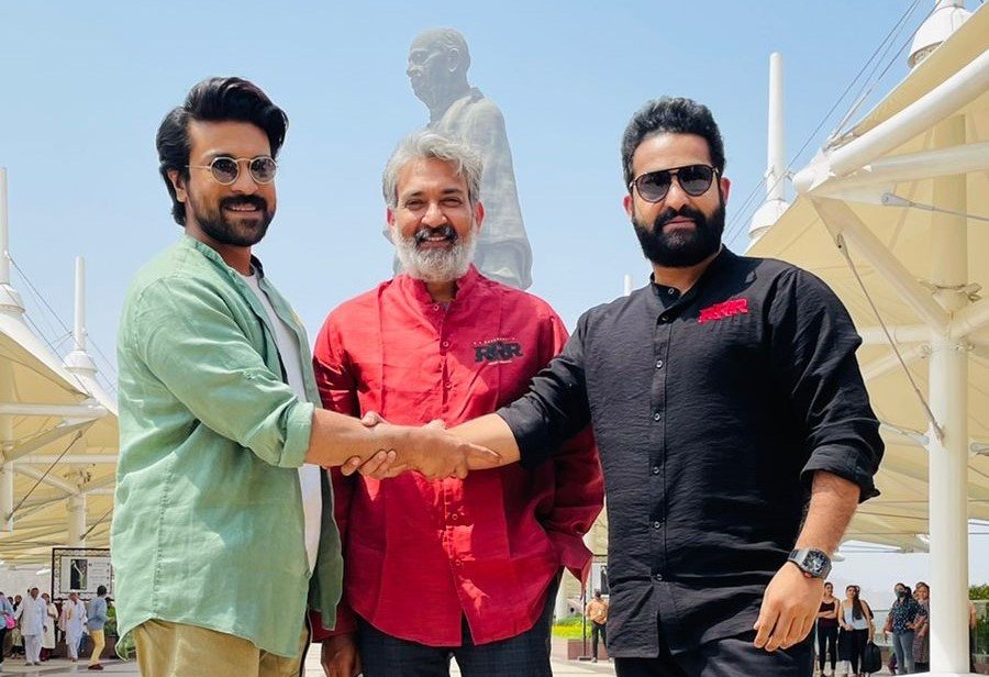 कई बार रिलीज़ की तारीफ़ आगे खिसकने के बाद अब आख़िरकार एसएस राजामौली की भव्य फ़िल्म ‘आरआरआर’ दर्शकों के सामने अपनी भव्यता का प्रदर्शन करने के लिए पूरी तरह से तैयार है. आरआरआर से जुड़े सुपरस्टार एनटीआर जूनियर, राम चरण और निर्देशक एसएस राजामौली फ़िल्म के प्रमोशन में किसी भी तरह की कमी नहीं छोड़ रहे हैं. जी हां, जिस तरह फ़िल्म इतनी भव्य है तो इसका प्रचार भी कुछ अलग और भव्य तरीक़े से ही होना चाहिए. ऐसा पहली बार हुआ है कि किसी फ़िल्म का प्रचार गुजरात में स्थित भव्य स्मारक ‘स्टैचू ऑफ़ यूनिटी’ पर किया गया और ऐसा हो भी क्यों ना आख़िरकार जिस तरह यह स्मारक एकता का प्रतीक है ठीक उसी तरह यह फ़िल्म भी एकता को दर्शाती है. सुपरस्टार एनटीआर जूनियर, राम चरण और एसएस राजामौली ने ‘स्टैचू ऑफ़ यूनिटी’ के पास खड़े होकर फ़ोटो खिंचवाई और अपनी उपस्थिति दर्ज कराते हुए विज़िटर्स डायरी में अपने हस्ताक्षर भी किए.